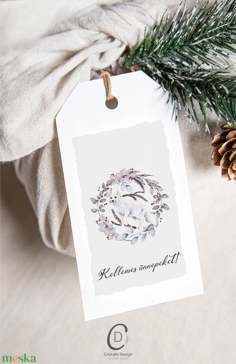 Karácsonyi ajándékkísérő, ajándékátadó címke szett 5 db, téli erdei állatos