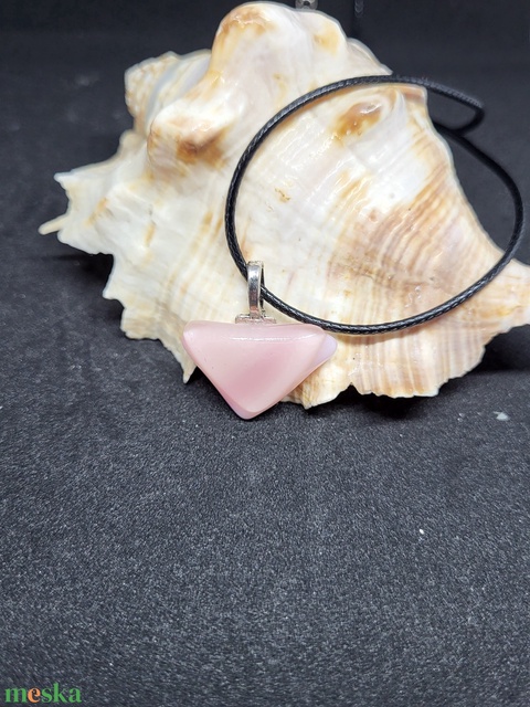 Rózsaszín üveg medál, zsinór nyaklánccal