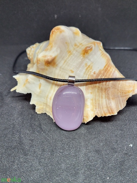 Lila üveg medál, zsinór nyaklánccal