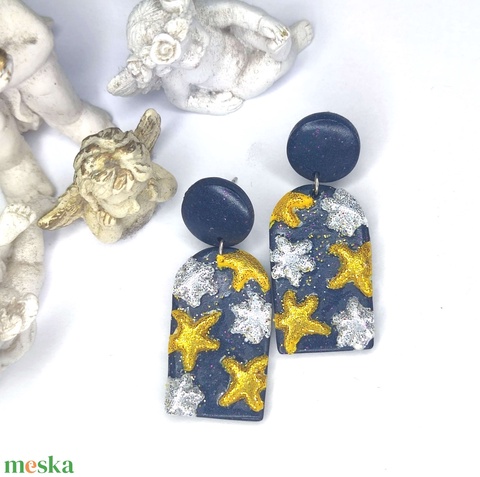 Csillogó hópelyhekkel és csillagokkal díszített fülbevaló