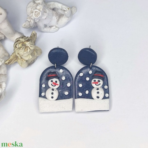 Hóember figurával díszített, csillogó sötétkék fülbevaló