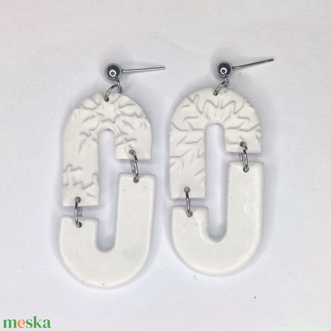 Fehér színű, két részből álló, hópihe mintás fülbevaló