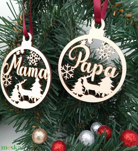 Névre szóló, gravírozott, fa karácsonyfadísz