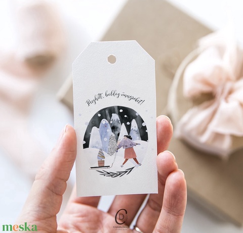 Karácsonyi ajándékkísérő, téli ajándékátadó kártya szett 5 db