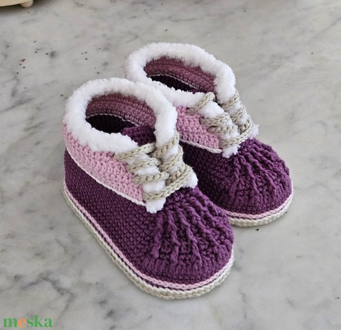 Magasszárú fűzős babacipő (padlizsán-rózsaszín)
