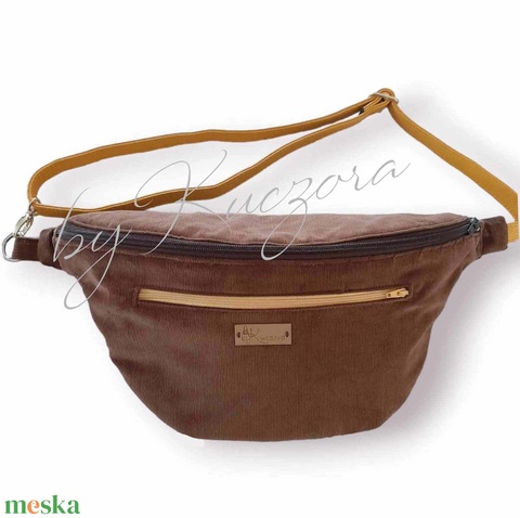 Nagy méretű övtáska alakú testtáska - barna bársony anyagból
