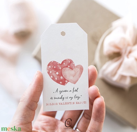 Valentin napi idézetes ajándékkísérő, szívecskés ajándékátadó kártya szett 4 db