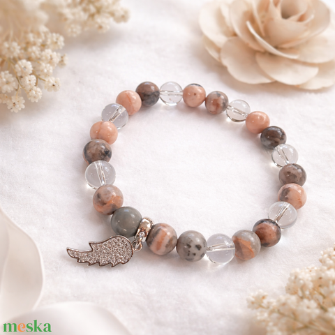 - Anyag/Összetevő ásvány, gumis damil, ékszerfém