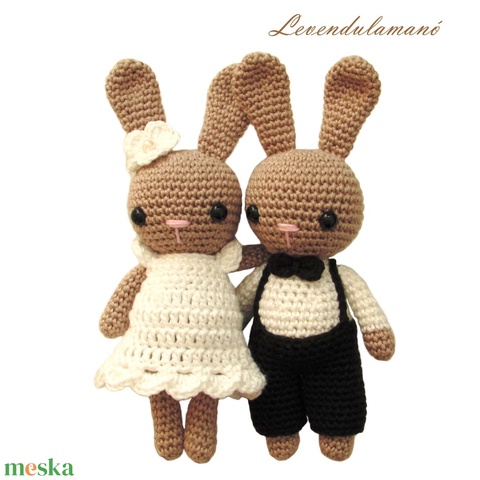 Rendelhető - Horgolt nyuszipár esküvői ruhában amigurumi nászajándék