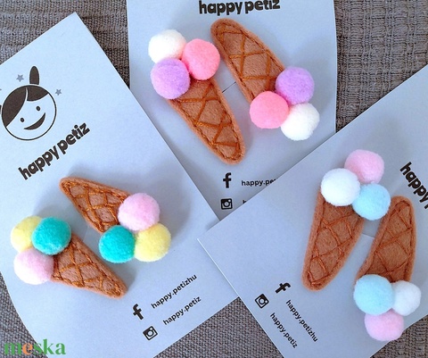 2 db Fagyis hajcsat, Filc és pompon fagyis hajcsat, Filc hajdísz, Fagyis csitt-csatt hajdísz, Fagylalt hajcsat