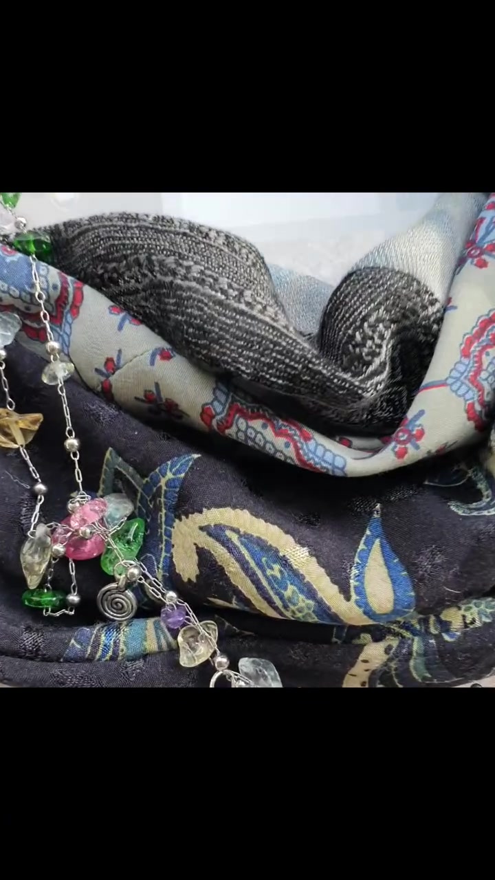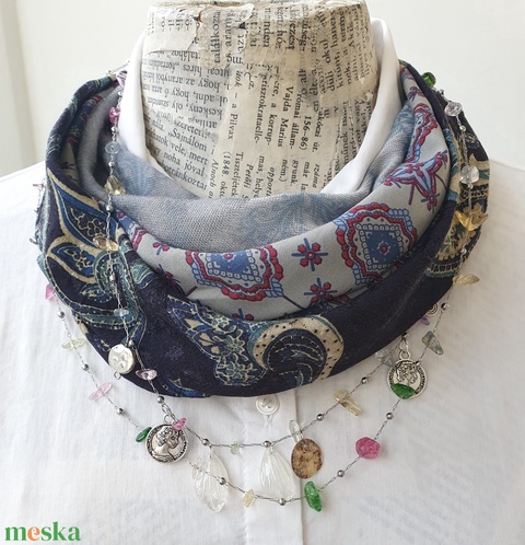 - Anyaga: textilek, ezüst szinű lánc, kvarc, üveggyöngy, végzárók, delfin kapocs