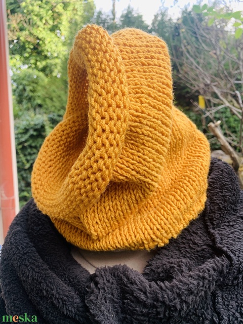 Sál. Csősál. Kézi kötésű méz sárga színű női kapucni sál eladó