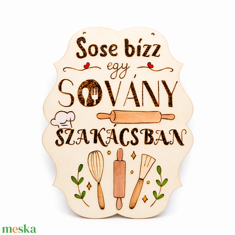Konyhai vicces pirogravírozott falikép