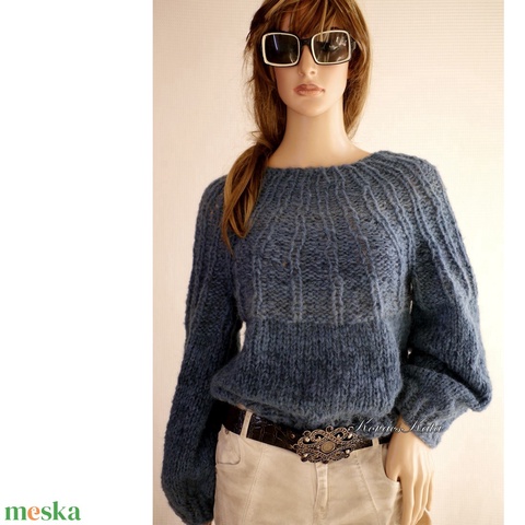 FANNI / kék ombre - exkluzív kézzel kötött alpaka, mohair pulóver