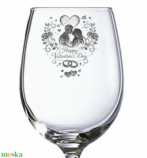 A Valentin-napi borospohár tökéletes választás, ha igazán személyes és romantikus ajándékkal szeretnéd meglepni párodat. Az elegáns üveg poharat finom, részletgazdag lézergravírozott Valentin-napi motívum díszíti, amely méltó kiegészítője a meghitt borozásoknak és közös pillanatoknak.