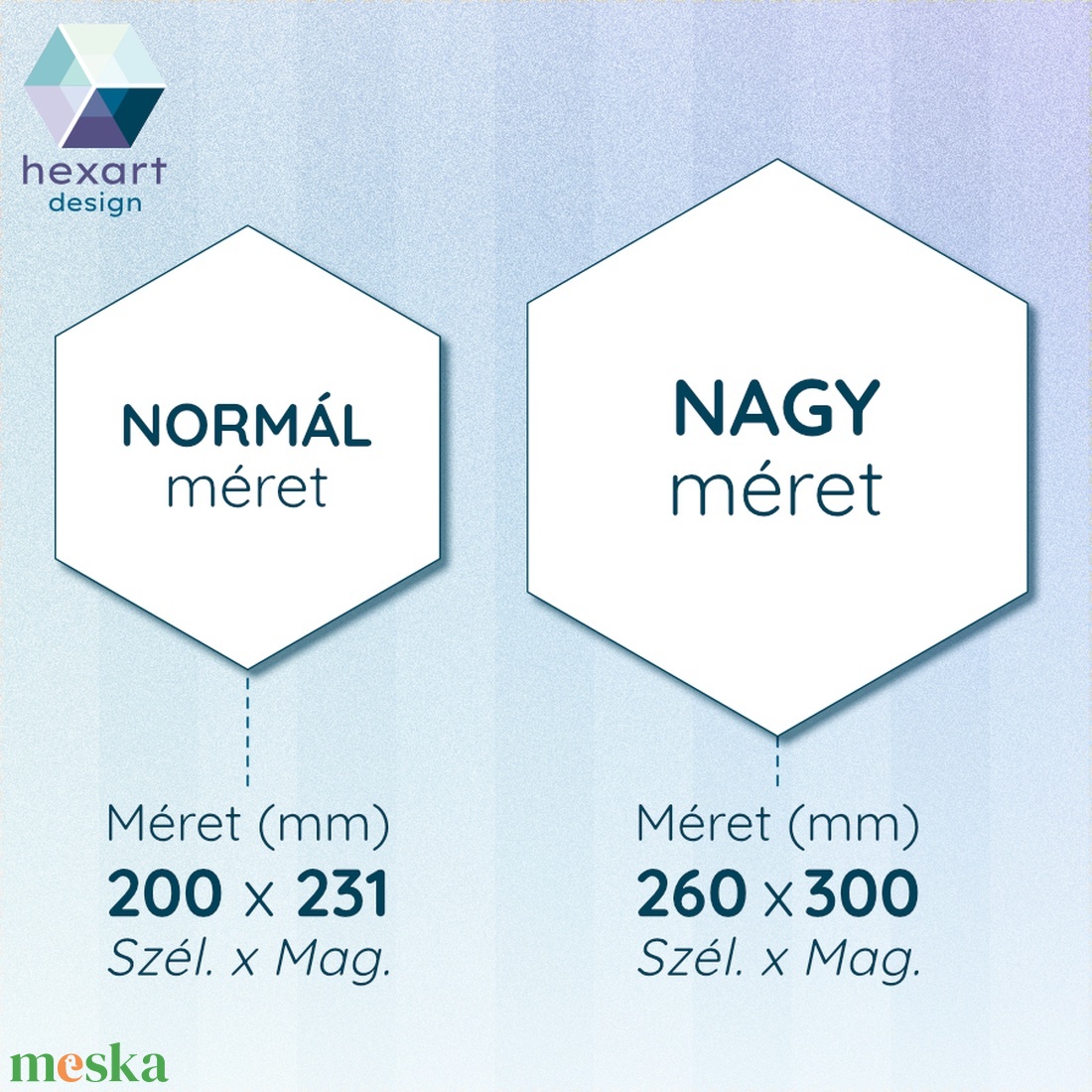 Minőségi fotópapírra készülő nyomat, amely egy 5 mm-es vastag, hatszög formájú fehér habkartonra van kasírozva. Rögzítése speciális ragasztási technológiával történik, amivel a dekoráció nyom nélkül áthelyezhető, akár többször is.