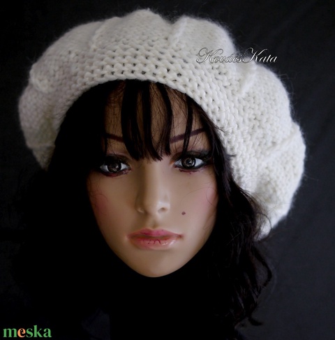 ANETT BARETT / fehér - kézzel kötött gyapjú sapka
