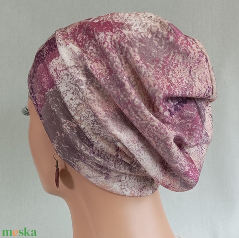 Sapka - Kemoterápiás sapka - bézs-bordó mintás -, daganatos kezelések idejére