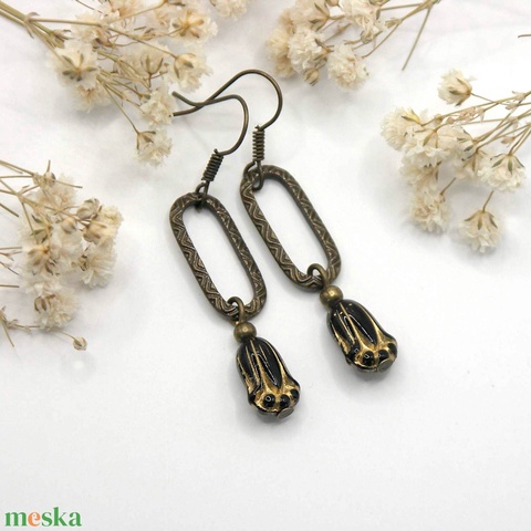 fülbevaló akasztó, cseh üveggyöngy, tulipán gyöngy