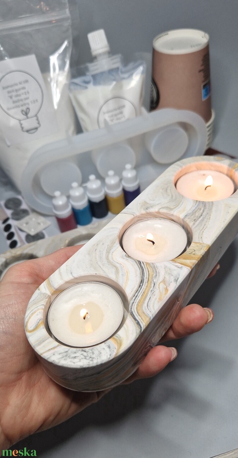 Képekkel illusztrált lépésről-lépésre segédanyagot is állítottam össze a teljes öntés-színezés folyamatáról, így elsajátíthatod a gyönyörű márvány öntés technikáját is.