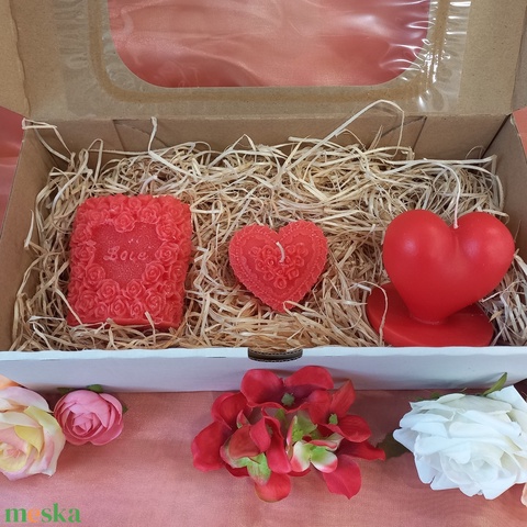 Szívgyertya szett dobozban