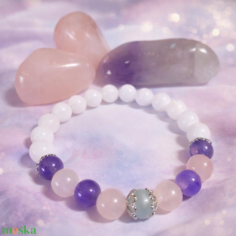 Tejkvarc,rózsakvarc,ametiszt és akvamarin ásvány karkötő