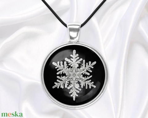 Fekete-fehér üveglencsés medál hópehellyel