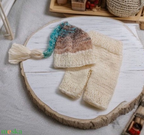 Kötött baba sapka és nadrág szett újszülött fotózásra