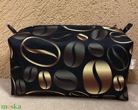 CoffeeChic – fekete-arany kávészem-mintás sminktáska/neszesszer
