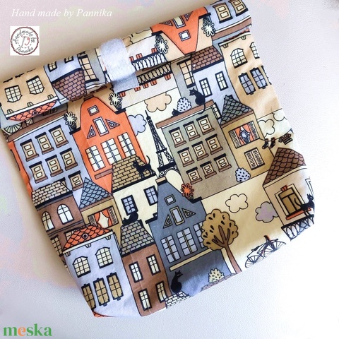 Roll top Uzsonnás, frissentartó tasak (cicusok Párizsban) szendvicstartó, neszesszer zerowaste tároló