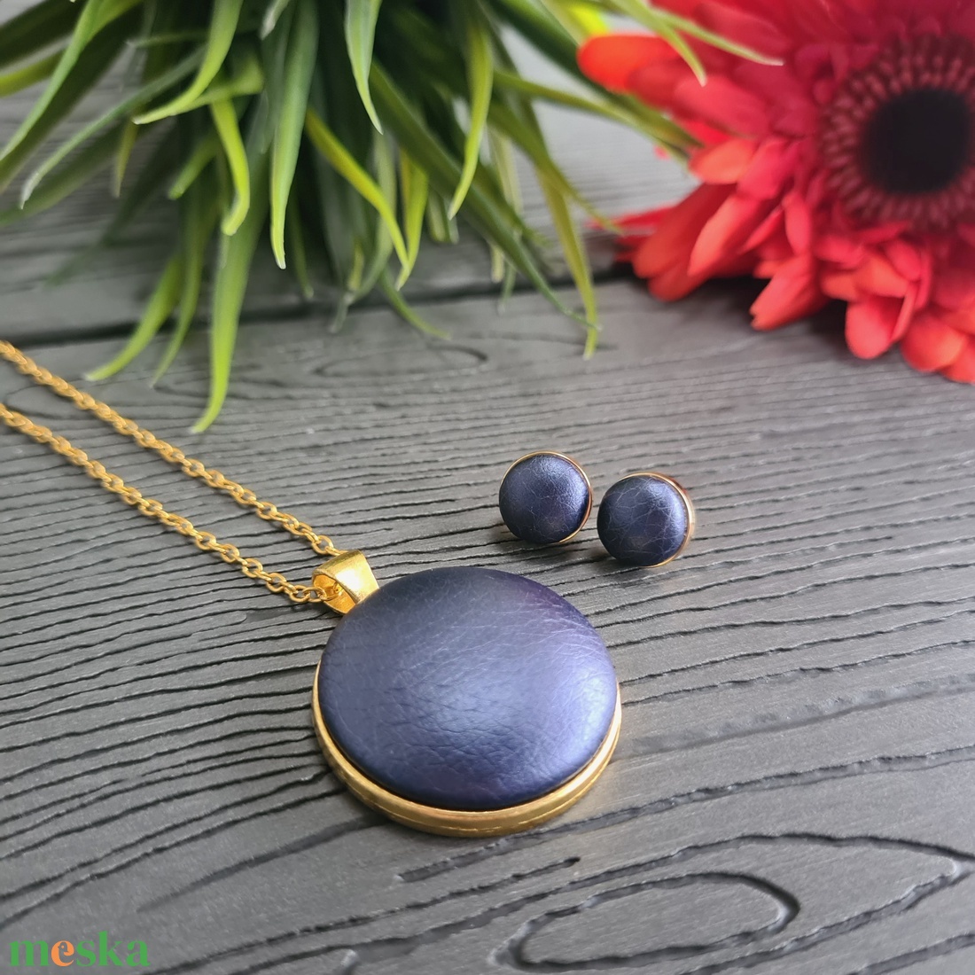 Metál tengerészkék - arany fülbevaló és nyaklánc szett