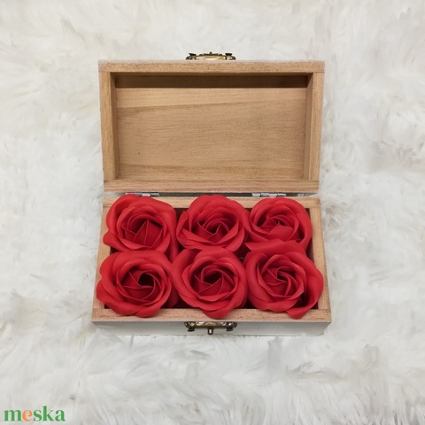 Szappanrózsa feliratos fa ládikában - piros vagy fehér szappanrózsákkal