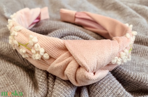 Hajpánt. Kislány hajráf puha púder rózsaszín anyagból fehér hímzett virágokkal