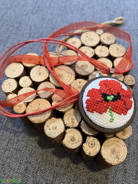 pipacsos, keresztszemes hímzett nyaklánc