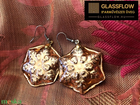 Hópelyhes Snowflake Designer függő fülbevaló üveg-ezüst-arany nemesfém