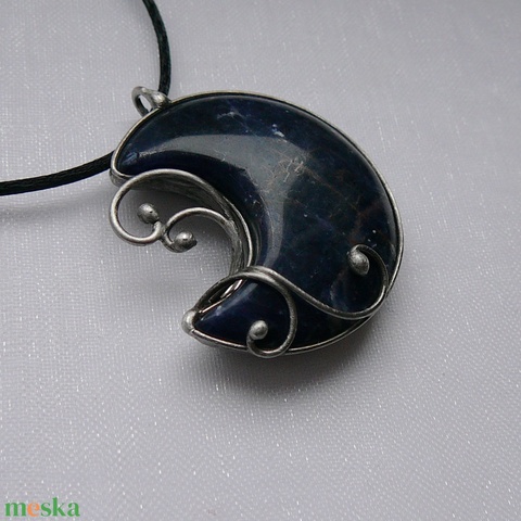 A medál Tiffany technikával készült szodalit és ólommentes, ezüsttartalmú ón felhasználásával. A fémrészt óezüstre patináztam és lelakkoztam, hogy sokáig szép maradjon.