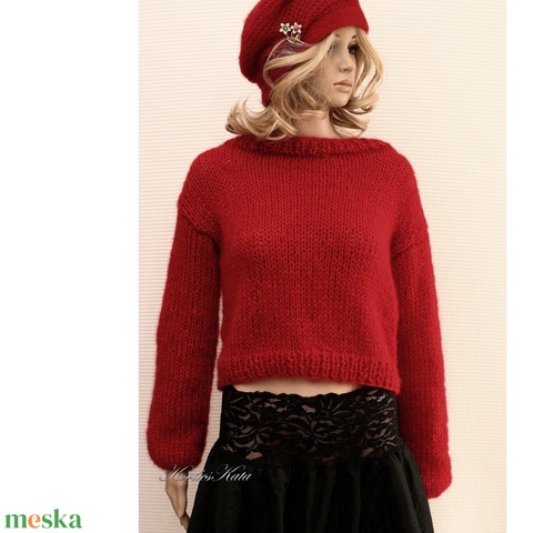 KID MOHAIR-SILK PULCSI - exkluzív kézzel kötött pulóver / vörös