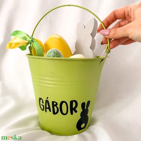 Húsvéti névre szóló tojásgyűjtő vödör gyerekeknek - zöld