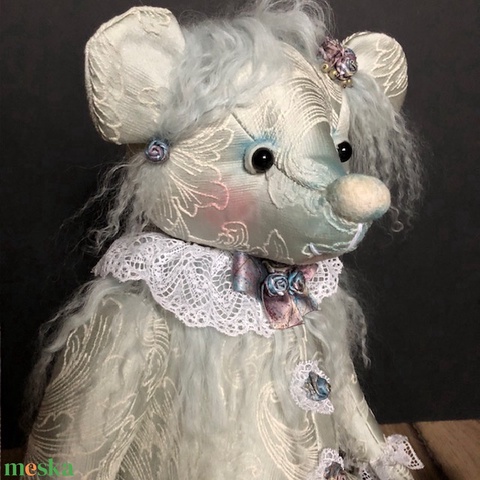 Ezüstös, barokk hatású nagy mackó