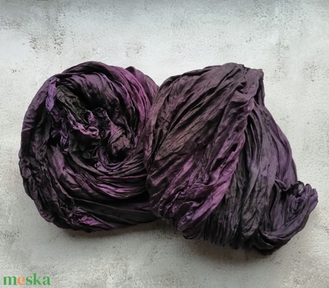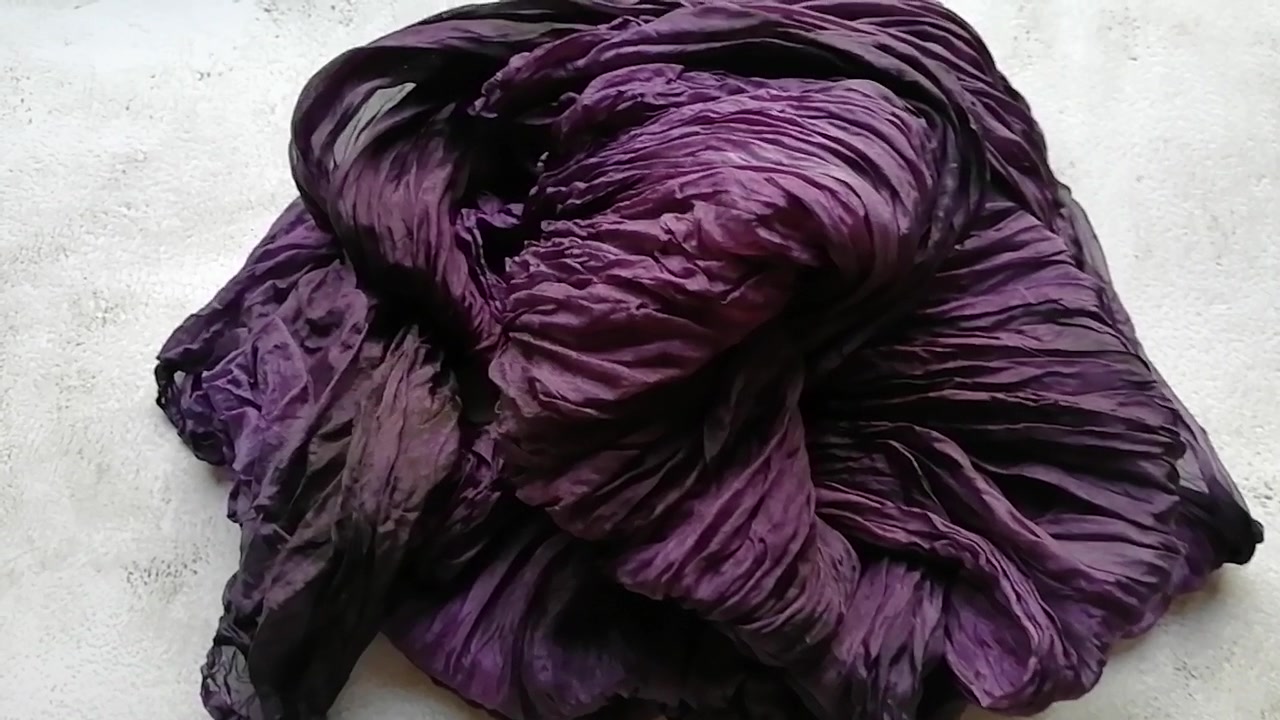 Selyem kendő gyűrt sötét lila színárnyalat foltok