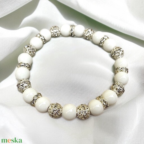 ásványgyöngy, damil, ezüst, strasszkő, strassz, gyöngy, porcelán, jáde
