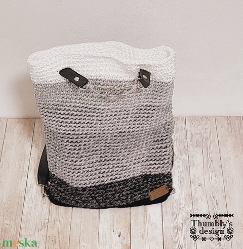 - Anyag/Összetevő akril fonal, bőr, vászon