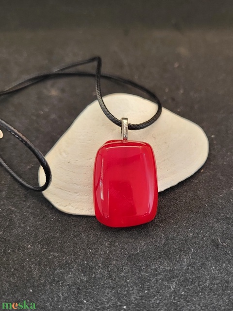 Piros üveg medál, zsinór nyaklánccal