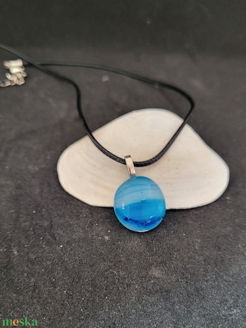 Kék üveg medál, zsinór nyaklánccal