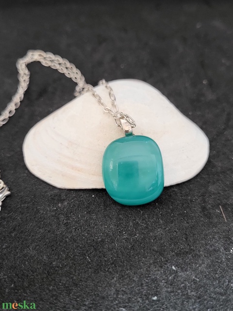 Türkiz üveg medál, zsinór nyaklánccal