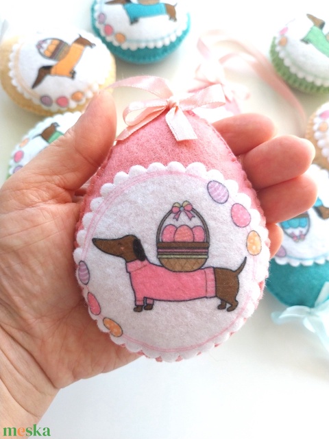 Tacskós filc tojások, Húsvéti tojás dekoráció, akasztós húsvéti tojások, Tacskós dekoráció, Kutyás ajándék, kutyus dekor