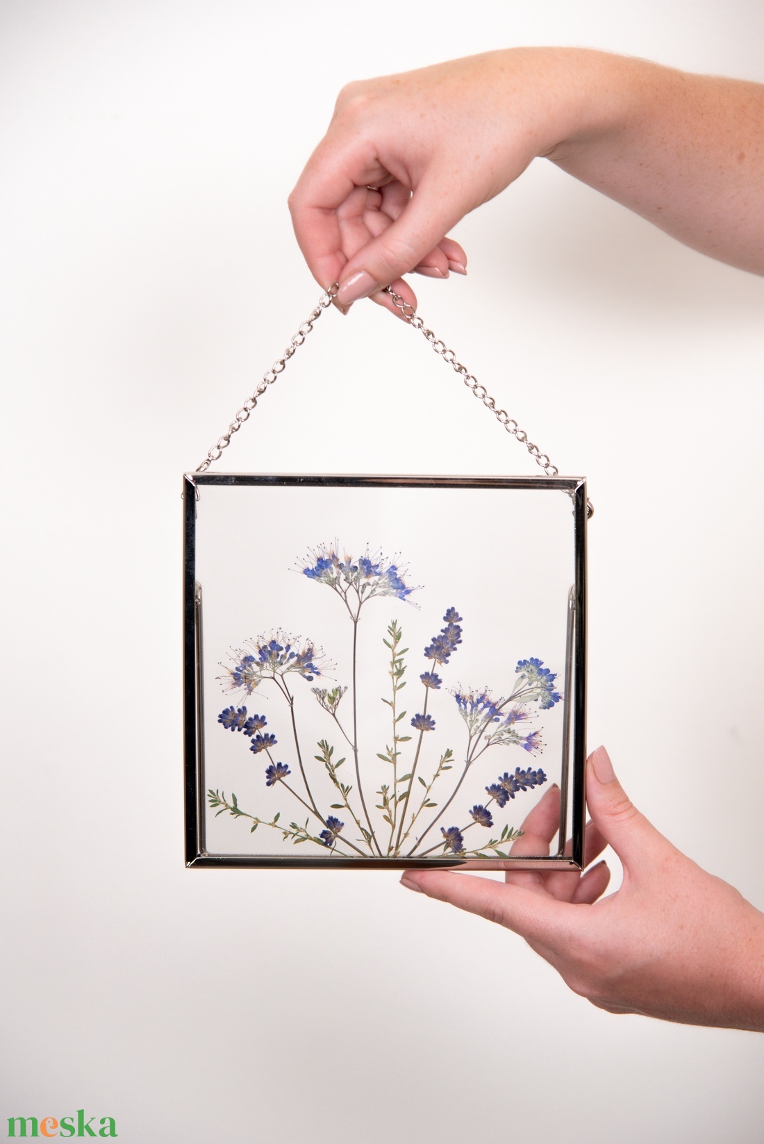- Anyaga: ezüst keret, préselt levendula, préselt kékszakáll, akasztó lánc