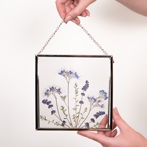 Anyák napja ajándék Levendula és kékszakáll virágok ezüstös keretben 16 x 16 cm