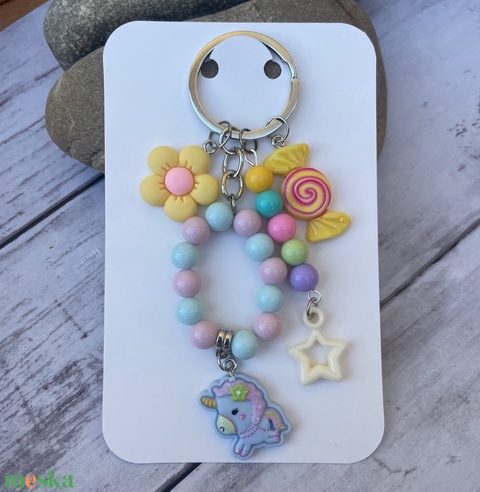 Gyöngy kulcstartó táskadísz medálokkal