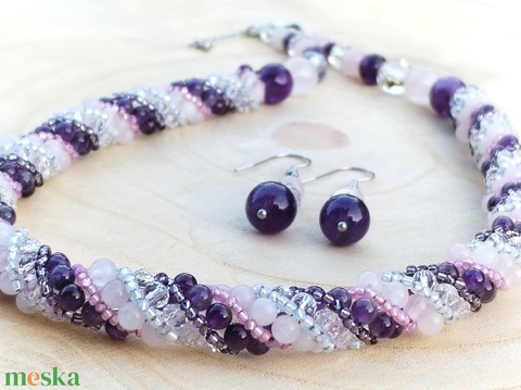 Ametiszt-rózsakvarc orosz spirál ékszerszett